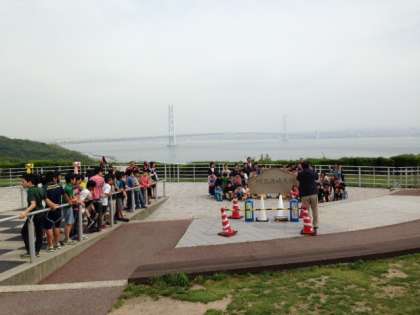 きれいな景色を堪能して,明石海峡大橋をバックに記念撮影。