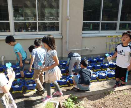 子どもたちは大喜び!これからもお世話を続けて,どんどん大きくなってほしいです。