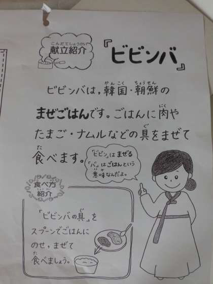 金曜日の給食は,『ビビンバ』でした。
