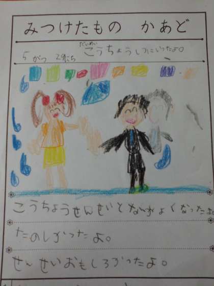 校長先生にインタビューに行った時のことを「みつけたもの かあど」にかきました。