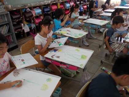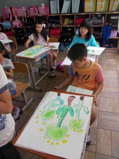 緑の葉っぱを塗るのも1色だけじゃなく、黄緑を混ぜたりしながら色を調節しました。