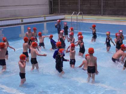 その後は,水をかけあったり,歩いたり,ワニさん歩きをしたりしました。