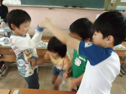 「なべなべ」を2人組・グループで動きをつけて歌いました。