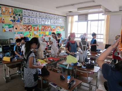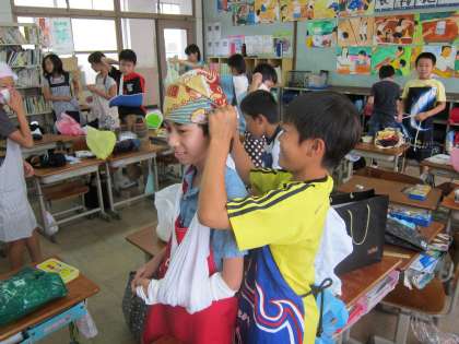 身支度を整えて,準備物を持って,家庭科室へ出発です!