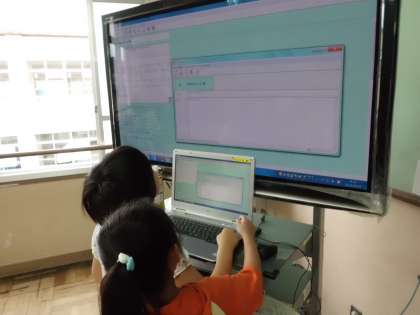 藤ノ森小学校では,毎日パソコン内の掲示板に校長先生からのメッセージと写真が掲示されます。子どもたちは毎日それを楽しみにしていて,朝学校に来ると,返信をします。キーボードを打つのもだんだん慣れてきました!