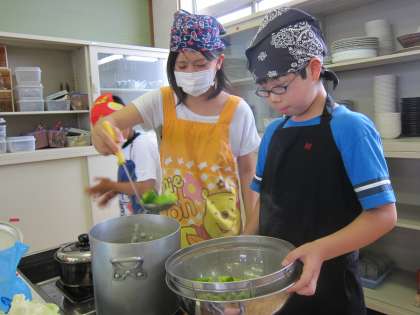 にんじんをゆでた後のお湯を使うと,水もガスも節約できますね!