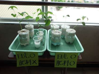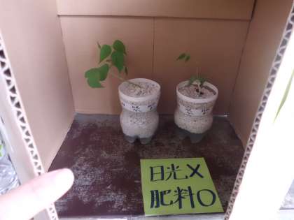 「日光ありと日光なしの実験」と「肥料ありとなしの実験」を準備しました。