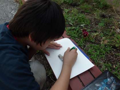創作クラブでは,校庭に出て,季節を感じる動植物をスケッチしました。