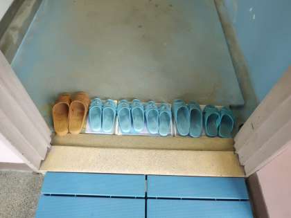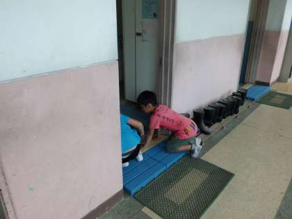 乱れているトイレのスリッパを揃えている1年生を発見!