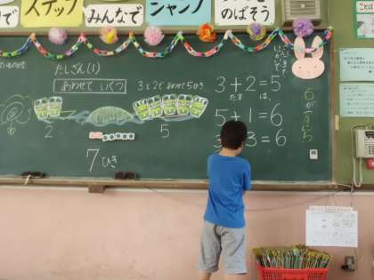 たし算の学習では,はじめて「式」を書く練習をしました。
