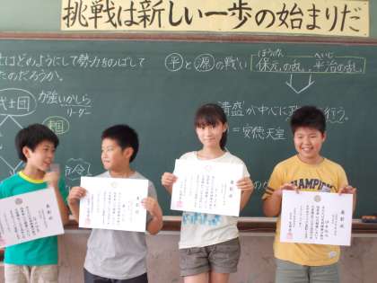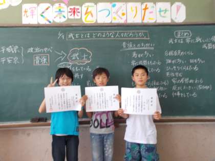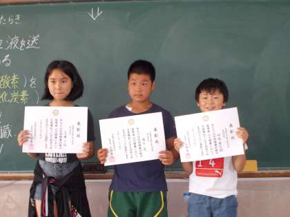 教室で校長先生から一人一人表彰されて、みんなとてもいい顔をしていました。