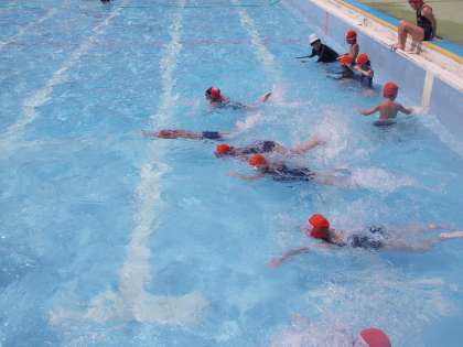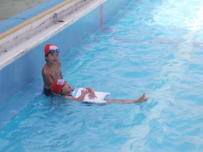 みずあそびで,いろいろな泳ぎ方にどんどん挑戦しています。
