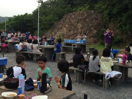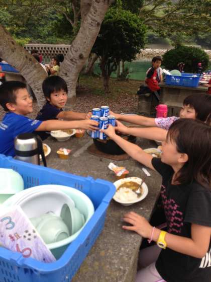 自分たちで作ったカレー,みんなでおいしくいただきます。