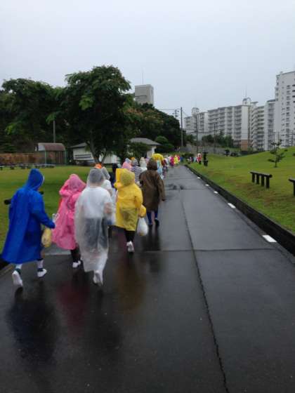 90畳の部屋で説明を聞いて宮崎浜に向けて出発しました。