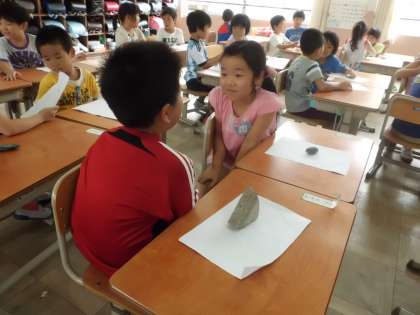 自分たちが見つけてきた石に名前をつけ,その石について友達に発表しました。