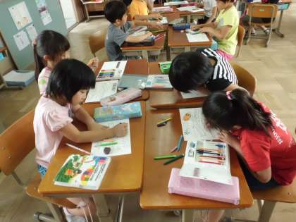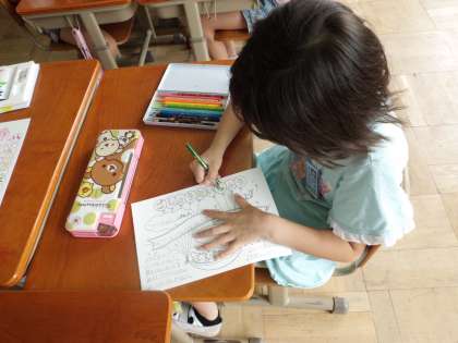 「1年生のほかにも,招待したいな。」という子どもたちの声から,招待状を作ることにしました。心をこめて字を書いたり,色を塗ったりしている姿を見て,この発表会を心待ちにしているのだなと思いました。
