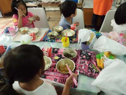 時間内に全員食べ終わることができ,シールを貼ってもらって嬉しそうでした。