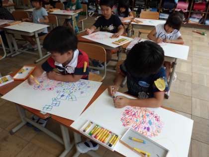 藤森神社のあじさいのつどいで見てきたあじさいを,図工の時間に描きました。
