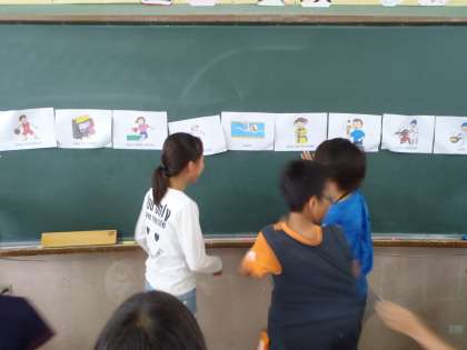 『ドン じゃんけんゲーム』をしながら,たくさんの英語を話していました。