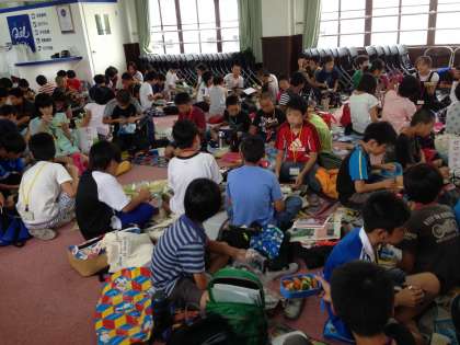 ランチタイムです。ちょっと一息,緊張がほぐれてほっとした様子です。