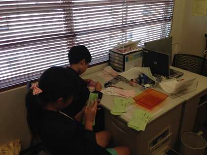 手際良く、書類を数えています。落ち着いて仕事に取り組んでいます。