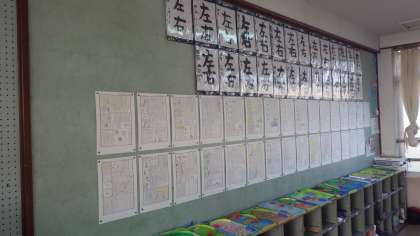 後ろの壁には,書写「左右」と,社会の新聞を飾っています。こちらもぜひご覧ください。