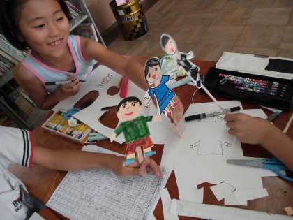 ペープサートを使って劇風に発表するグループ,クイズ形式で楽しく発表を聞いてもらうグループ。