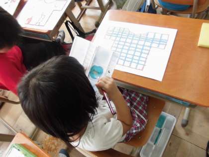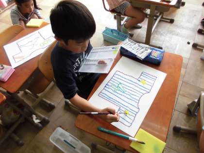 絵の具の使い方も少しずつ慣れてきたようで,正しく筆洗,パレットを使うことができました。