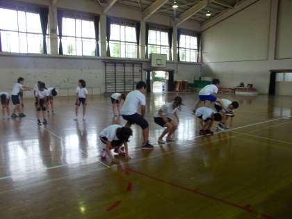 体ほぐしで馬跳びをしました。