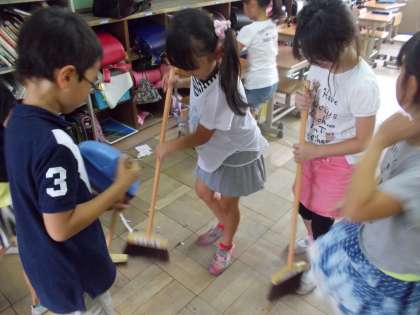 毎日使う教室を頑張ってみんなできれいにしています。