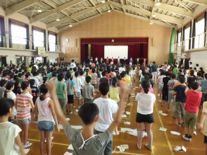 運動委員会の人が前に立って,ラジオ体操の確認をしてくれました。