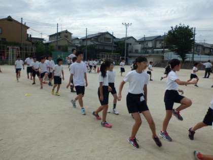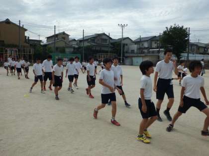 ウォーミングアップでは,しっかり太ももを上げるアップをしました。