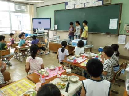 9月の給食目標は,『給食を返すときに,食器かごの取っ手を外側に出そう』です。