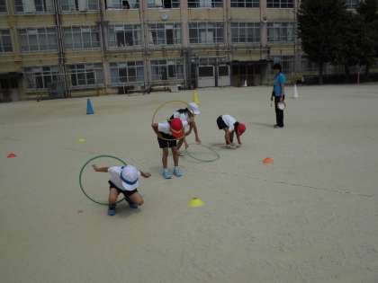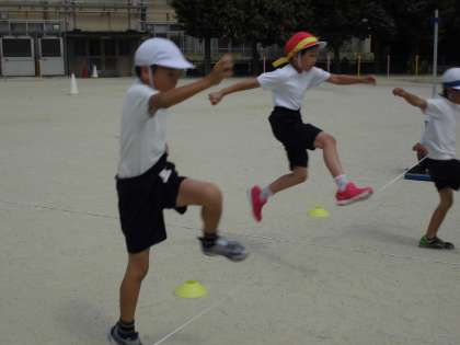 アイデア走では,ケンパやフラフープ,ゴムの跳び方やくぐり方がとても上達してきました。