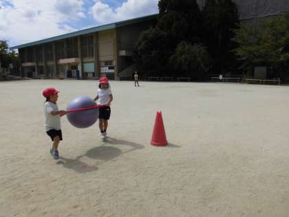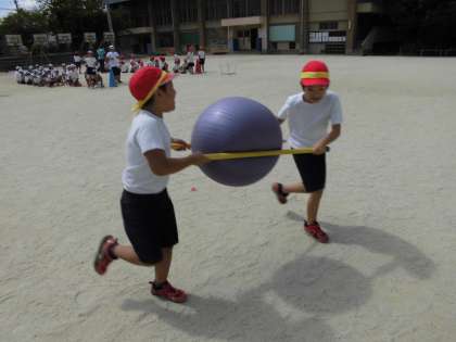 ビッグ・ボール・リレーでは,各チームの熱い意気込みが運動場に響いていました。