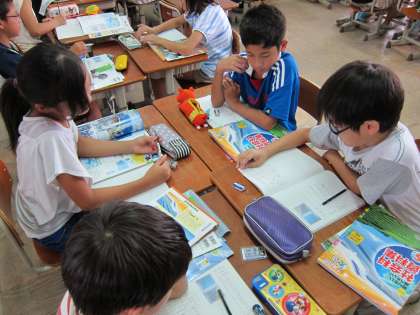 昔に比べて沖合漁業の水揚げ高が減ってきた理由を各自が調べ,グループで交流しました。