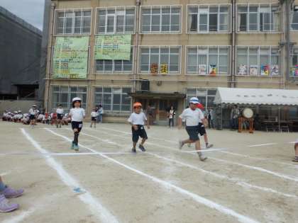 アイデア走のとんだりくぐったりでは,練習でゴムにひっかかっていた子も,本番では,すごいジャンプで跳び越えたり,うまく頭を低くしてくぐったりしている姿が見られました。