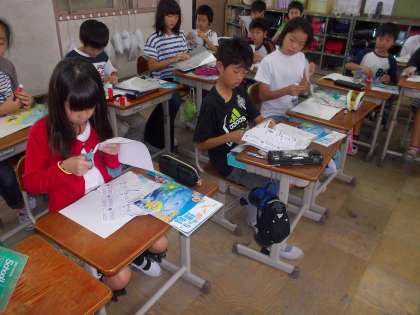 台風の動きを調べるために新聞に載っている「天気図」をノートに貼りました。これからさらに気象情報を集めて台風の動きを調べていきます。