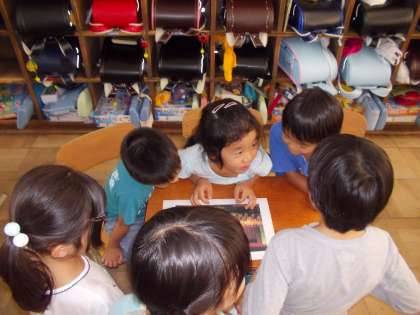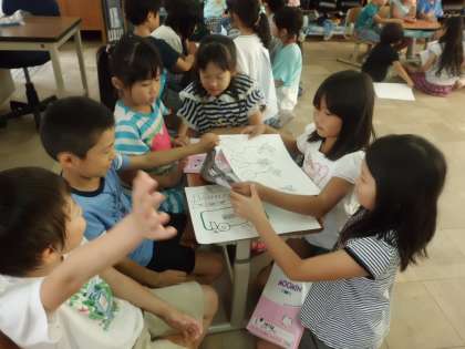 3年生が教室に来て,行事のお話をしてくれました。1年生からたくさん質問することができました。「遠足が楽しみになった」「行事のことがくわしくわかって良かった」など意見がでました。まずは遠足。楽しみですね!ぞうやきりんの写真に見入っていました。