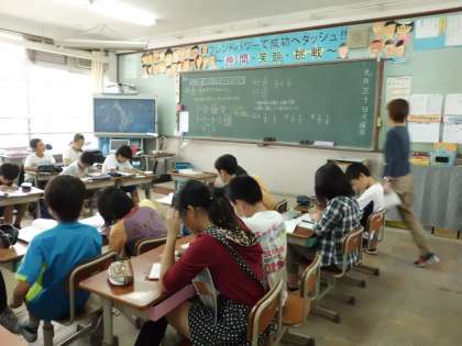 不等号を使って、分母が違う分数の大きさを比べる学習をしました。