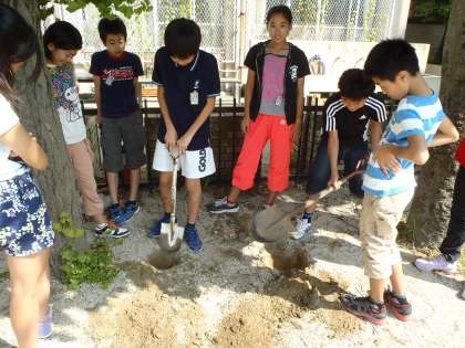 少し掘っただけでも,土の色が変わり,手で中を触ってみると,冷たかったり,石が出てきたり・・土の中は表面からは見えない,わからないことも分かってきました。
