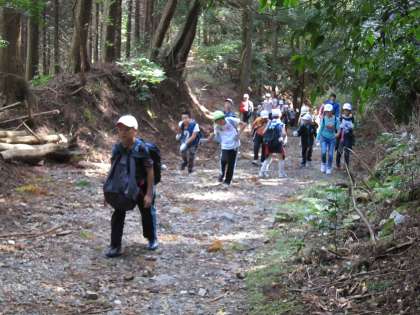 「大丈夫?」と声をかけ合ったり,疲れている友達のリュックをもってあげたりと,グループで助け合いながら登っています。