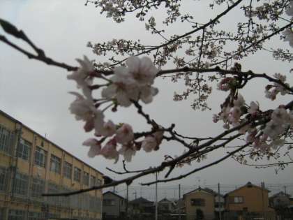 桜が咲き,もう春はそこまで来ていると思っていたのですが,珍しく桜が咲く中雪が降ってきました。花散らしの雨とは申しますが,今回は花持たせの雪とでもいいましょうか。