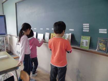 自分で好きな本を選んで,友だちに披露します。