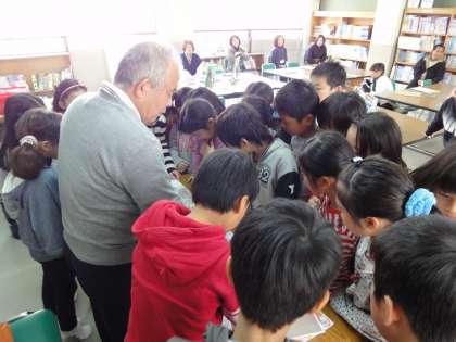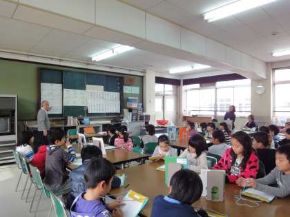 地域の方に,昔の藤ノ森学区の様子について教えていただきました。第二次世界大戦の頃や戦後の校区の様子や,その頃使っていた道具などについてたくさん知ることができました。