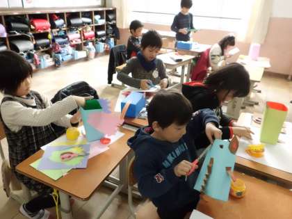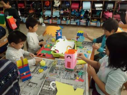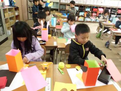 自分で紙から作った箱を使って,今日は飾り付けをしました。
