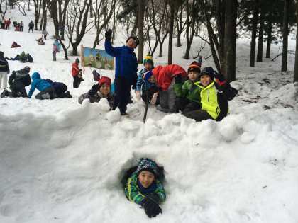 5年生 長期宿泊学習 1日目 雪遊び そり遊び4