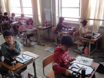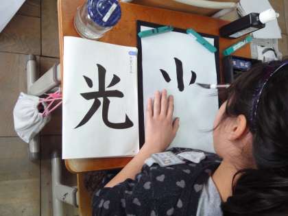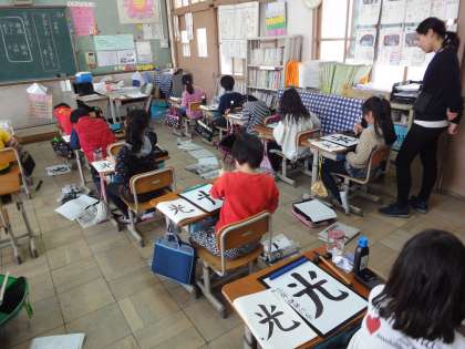 3年生の書写で学習してきた「縦画」「横画」「はらい」「はね」「曲がり」「点」に気をつけて書きました。