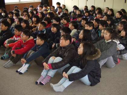 1時間目に,視聴覚室で松永さんから視覚障害のある人たちの