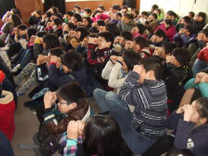 松永さんの指導の後,二人一組になり交代で体験をしました。